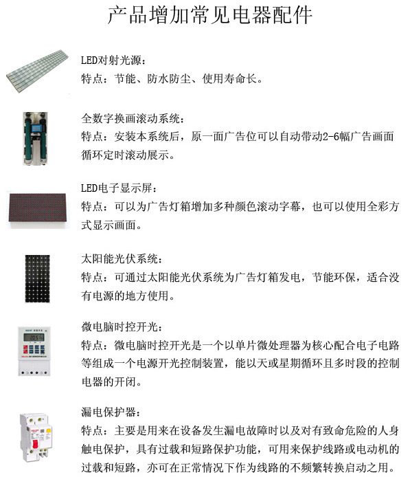 我公司專業(yè)生產(chǎn)公交站臺、候車亭、不銹鋼公交候車亭、鋁合金公交候車亭、仿古候車亭、公共自行車棚、公共自行車亭、自行車服務(wù)亭、出租車的士亭、公交電子站牌、宣傳欄燈箱、閱報欄燈箱、崗?fù)ぁ⒅嘎放啤⒙访茻粝洹ED滾動燈箱、廣告垃圾箱、戶外大型廣告燈箱等幾十種廣告設(shè)備。