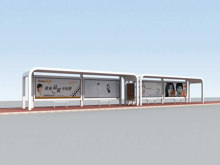 公交車候車亭一般是與公交站牌相配套的,為方便公交乘客候車時遮陽、防雨等,在車站、道路兩旁或綠化帶的港灣式公交停靠站上建設(shè)的交通設(shè)施。由于城市公交的日益發(fā)達,候車亭已發(fā)展成為城市一個不可或缺的重要組成部分,設(shè)計精美的候車亭也成為了城市一道美麗的風景。 一般候車亭棚體主要頂棚、立柱、頂弓、廣告燈箱和坐凳組成,也有用隔板來代替廣告燈箱的。