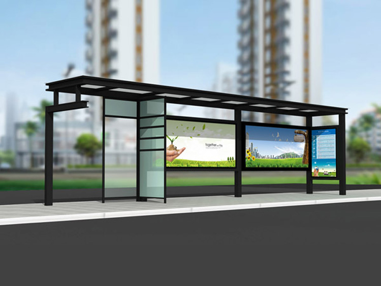 公交車候車亭一般是與公交站牌相配套的,為方便公交乘客候車時遮陽、防雨等,在車站、道路兩旁或綠化帶的港灣式公交停靠站上建設的交通設施。由于城市公交的日益發達,候車亭已發展成為城市一個不可或缺的重要組成部分,設計精美的候車亭也成為了城市一道美麗的風景。 一般候車亭棚體主要頂棚、立柱、頂弓、廣告燈箱和坐凳組成,也有用隔板來代替廣告燈箱的。