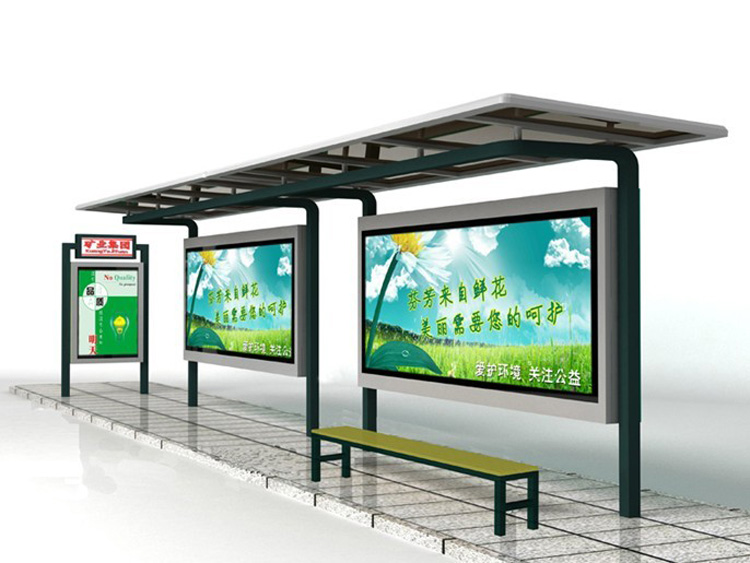 公交車候車亭一般是與公交站牌相配套的,為方便公交乘客候車時遮陽、防雨等,在車站、道路兩旁或綠化帶的港灣式公交?空旧辖ㄔO的交通設施。由于城市公交的日益發達,候車亭已發展成為城市一個不可或缺的重要組成部分,設計精美的候車亭也成為了城市一道美麗的風景。 一般候車亭棚體主要頂棚、立柱、頂弓、廣告燈箱和坐凳組成,也有用隔板來代替廣告燈箱的。