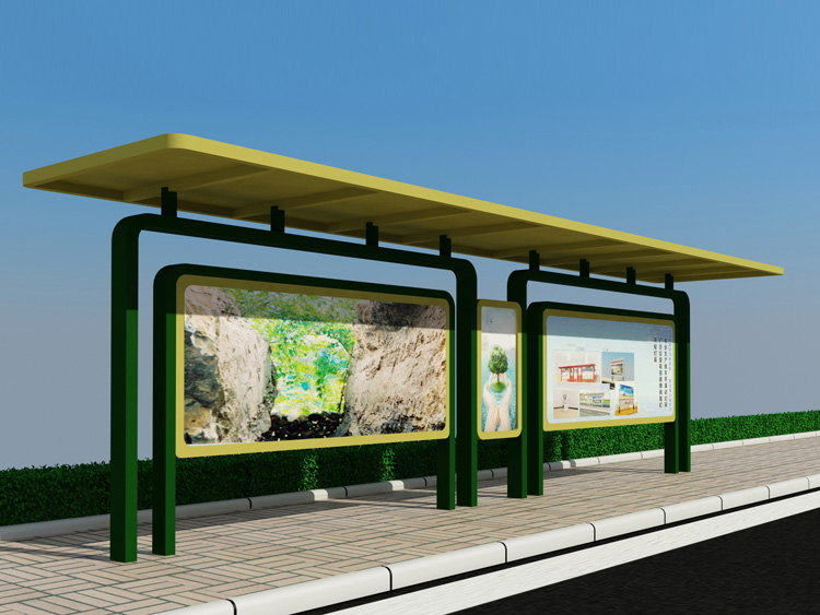 公交車候車亭一般是與公交站牌相配套的,為方便公交乘客候車時遮陽、防雨等,在車站、道路兩旁或綠化帶的港灣式公交停靠站上建設的交通設施。由于城市公交的日益發(fā)達,候車亭已發(fā)展成為城市一個不可或缺的重要組成部分,設計精美的候車亭也成為了城市一道美麗的風景。 一般候車亭棚體主要頂棚、立柱、頂弓、廣告燈箱和坐凳組成,也有用隔板來代替廣告燈箱的。