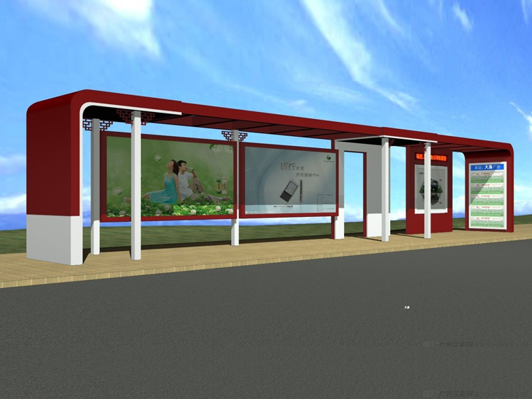 公交車候車亭一般是與公交站牌相配套的,為方便公交乘客候車時遮陽、防雨等,在車站、道路兩旁或綠化帶的港灣式公交停靠站上建設的交通設施。由于城市公交的日益發達,候車亭已發展成為城市一個不可或缺的重要組成部分,設計精美的候車亭也成為了城市一道美麗的風景。 一般候車亭棚體主要頂棚、立柱、頂弓、廣告燈箱和坐凳組成,也有用隔板來代替廣告燈箱的。