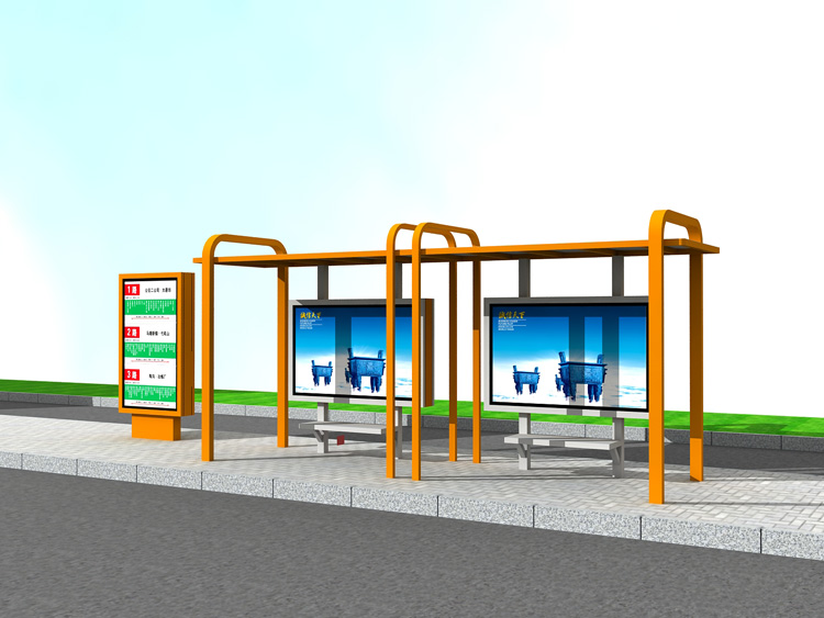 公交車候車亭一般是與公交站牌相配套的,為方便公交乘客候車時遮陽、防雨等,在車站、道路兩旁或綠化帶的港灣式公交停靠站上建設的交通設施。由于城市公交的日益發達,候車亭已發展成為城市一個不可或缺的重要組成部分,設計精美的候車亭也成為了城市一道美麗的風景。 一般候車亭棚體主要頂棚、立柱、頂弓、廣告燈箱和坐凳組成,也有用隔板來代替廣告燈箱的。