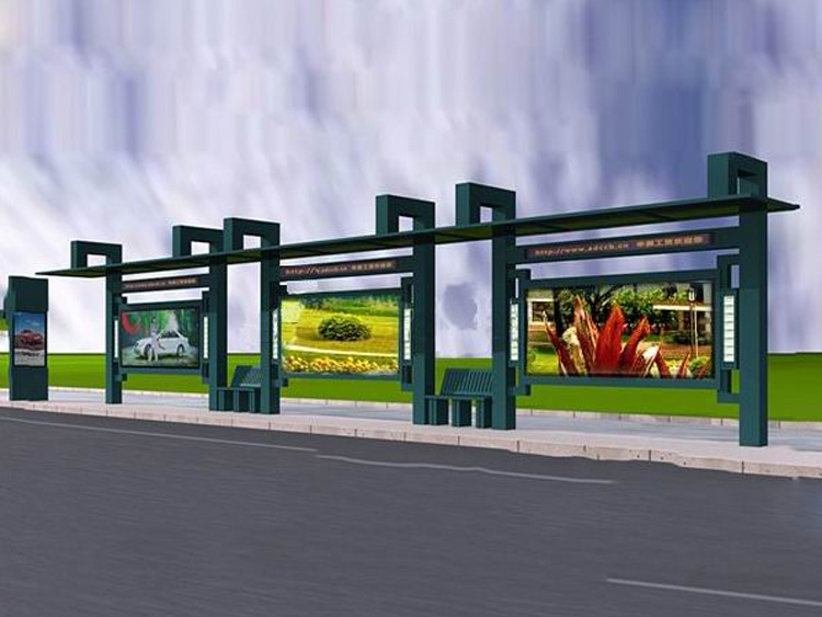 公交車候車亭一般是與公交站牌相配套的,為方便公交乘客候車時遮陽、防雨等,在車站、道路兩旁或綠化帶的港灣式公交停靠站上建設的交通設施。由于城市公交的日益發達,候車亭已發展成為城市一個不可或缺的重要組成部分,設計精美的候車亭也成為了城市一道美麗的風景。 一般候車亭棚體主要頂棚、立柱、頂弓、廣告燈箱和坐凳組成,也有用隔板來代替廣告燈箱的。