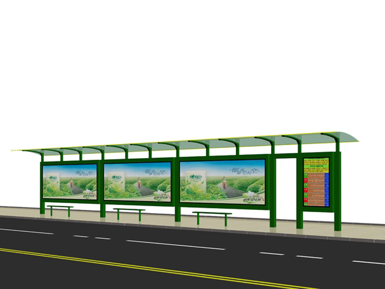 公交車候車亭一般是與公交站牌相配套的,為方便公交乘客候車時遮陽、防雨等,在車站、道路兩旁或綠化帶的港灣式公交停靠站上建設的交通設施。由于城市公交的日益發達,候車亭已發展成為城市一個不可或缺的重要組成部分,設計精美的候車亭也成為了城市一道美麗的風景。 一般候車亭棚體主要頂棚、立柱、頂弓、廣告燈箱和坐凳組成,也有用隔板來代替廣告燈箱的。