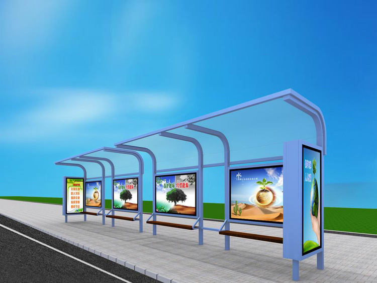 公交車候車亭一般是與公交站牌相配套的,為方便公交乘客候車時遮陽、防雨等,在車站、道路兩旁或綠化帶的港灣式公交停靠站上建設的交通設施。由于城市公交的日益發達,候車亭已發展成為城市一個不可或缺的重要組成部分,設計精美的候車亭也成為了城市一道美麗的風景。 一般候車亭棚體主要頂棚、立柱、頂弓、廣告燈箱和坐凳組成,也有用隔板來代替廣告燈箱的。