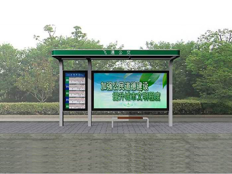 公交車候車亭一般是與公交站牌相配套的,為方便公交乘客候車時遮陽、防雨等,在車站、道路兩旁或綠化帶的港灣式公交?空旧辖ㄔO的交通設施。由于城市公交的日益發達,候車亭已發展成為城市一個不可或缺的重要組成部分,設計精美的候車亭也成為了城市一道美麗的風景。 一般候車亭棚體主要頂棚、立柱、頂弓、廣告燈箱和坐凳組成,也有用隔板來代替廣告燈箱的。