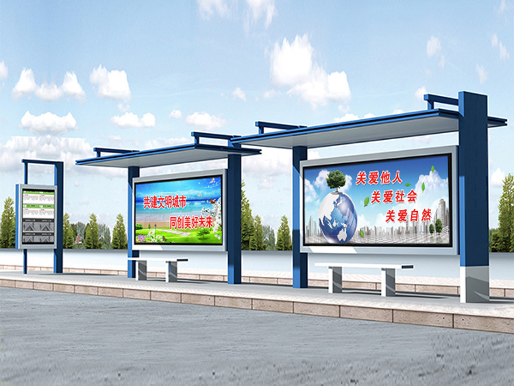 公交車候車亭一般是與公交站牌相配套的,為方便公交乘客候車時(shí)遮陽(yáng)、防雨等,在車站、道路兩旁或綠化帶的港灣式公交停靠站上建設(shè)的交通設(shè)施。由于城市公交的日益發(fā)達(dá),候車亭已發(fā)展成為城市一個(gè)不可或缺的重要組成部分,設(shè)計(jì)精美的候車亭也成為了城市一道美麗的風(fēng)景。 一般候車亭棚體主要頂棚、立柱、頂弓、廣告燈箱和坐凳組成,也有用隔板來代替廣告燈箱的。