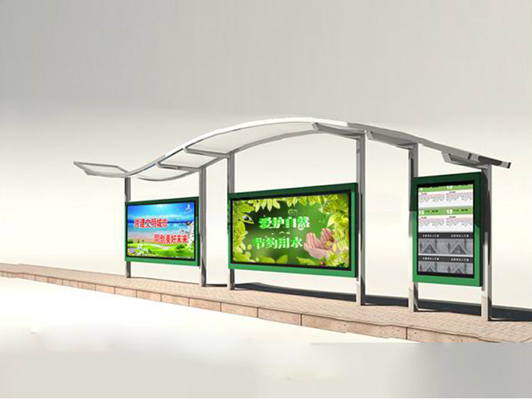 公交車候車亭一般是與公交站牌相配套的,為方便公交乘客候車時遮陽、防雨等,在車站、道路兩旁或綠化帶的港灣式公交停靠站上建設的交通設施。由于城市公交的日益發達,候車亭已發展成為城市一個不可或缺的重要組成部分,設計精美的候車亭也成為了城市一道美麗的風景。 一般候車亭棚體主要頂棚、立柱、頂弓、廣告燈箱和坐凳組成,也有用隔板來代替廣告燈箱的。