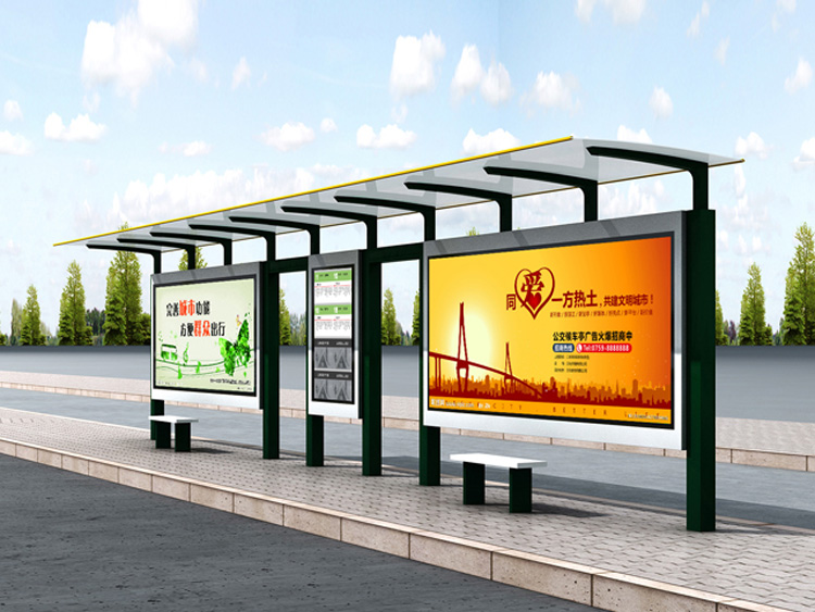 公交車候車亭一般是與公交站牌相配套的,為方便公交乘客候車時遮陽、防雨等,在車站、道路兩旁或綠化帶的港灣式公交停靠站上建設的交通設施。由于城市公交的日益發達,候車亭已發展成為城市一個不可或缺的重要組成部分,設計精美的候車亭也成為了城市一道美麗的風景。 一般候車亭棚體主要頂棚、立柱、頂弓、廣告燈箱和坐凳組成,也有用隔板來代替廣告燈箱的。