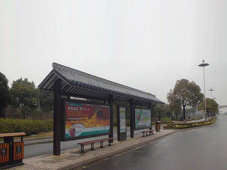 公交車候車亭一般是與公交站牌相配套的,為方便公交乘客候車時遮陽、防雨等,在車站、道路兩旁或綠化帶的港灣式公交停靠站上建設的交通設施。由于城市公交的日益發達,候車亭已發展成為城市一個不可或缺的重要組成部分,設計精美的候車亭也成為了城市一道美麗的風景。 一般候車亭棚體主要頂棚、立柱、頂弓、廣告燈箱和坐凳組成,也有用隔板來代替廣告燈箱的。