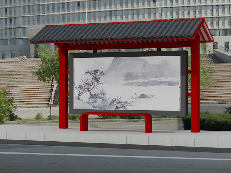 公交車候車亭一般是與公交站牌相配套的,為方便公交乘客候車時遮陽、防雨等,在車站、道路兩旁或綠化帶的港灣式公交停靠站上建設的交通設施。由于城市公交的日益發達,候車亭已發展成為城市一個不可或缺的重要組成部分,設計精美的候車亭也成為了城市一道美麗的風景。 一般候車亭棚體主要頂棚、立柱、頂弓、廣告燈箱和坐凳組成,也有用隔板來代替廣告燈箱的。