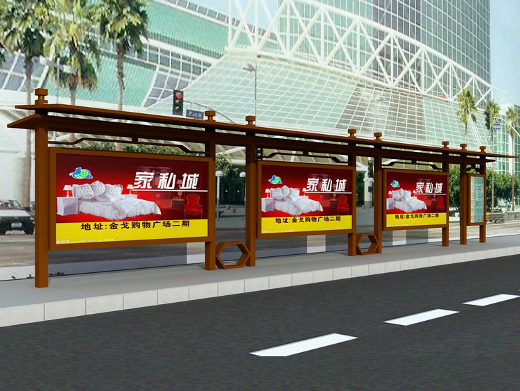 公交車候車亭一般是與公交站牌相配套的,為方便公交乘客候車時遮陽、防雨等,在車站、道路兩旁或綠化帶的港灣式公交停靠站上建設的交通設施。由于城市公交的日益發達,候車亭已發展成為城市一個不可或缺的重要組成部分,設計精美的候車亭也成為了城市一道美麗的風景。 一般候車亭棚體主要頂棚、立柱、頂弓、廣告燈箱和坐凳組成,也有用隔板來代替廣告燈箱的。