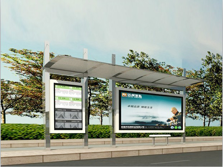 公交車候車亭一般是與公交站牌相配套的,為方便公交乘客候車時遮陽、防雨等,在車站、道路兩旁或綠化帶的港灣式公交停靠站上建設(shè)的交通設(shè)施。由于城市公交的日益發(fā)達(dá),候車亭已發(fā)展成為城市一個不可或缺的重要組成部分,設(shè)計精美的候車亭也成為了城市一道美麗的風(fēng)景。 一般候車亭棚體主要頂棚、立柱、頂弓、廣告燈箱和坐凳組成,也有用隔板來代替廣告燈箱的。
