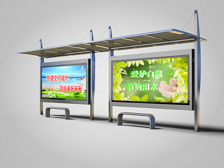 公交車候車亭一般是與公交站牌相配套的,為方便公交乘客候車時(shí)遮陽、防雨等,在車站、道路兩旁或綠化帶的港灣式公交停靠站上建設(shè)的交通設(shè)施。由于城市公交的日益發(fā)達(dá),候車亭已發(fā)展成為城市一個(gè)不可或缺的重要組成部分,設(shè)計(jì)精美的候車亭也成為了城市一道美麗的風(fēng)景。 一般候車亭棚體主要頂棚、立柱、頂弓、廣告燈箱和坐凳組成,也有用隔板來代替廣告燈箱的。