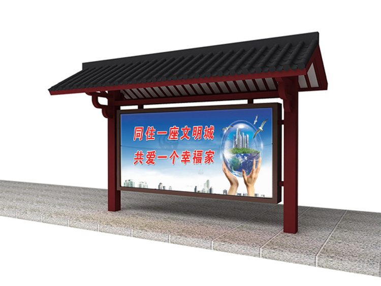 公交車候車亭一般是與公交站牌相配套的,為方便公交乘客候車時(shí)遮陽、防雨等,在車站、道路兩旁或綠化帶的港灣式公交停靠站上建設(shè)的交通設(shè)施。由于城市公交的日益發(fā)達(dá),候車亭已發(fā)展成為城市一個(gè)不可或缺的重要組成部分,設(shè)計(jì)精美的候車亭也成為了城市一道美麗的風(fēng)景。 一般候車亭棚體主要頂棚、立柱、頂弓、廣告燈箱和坐凳組成,也有用隔板來代替廣告燈箱的。