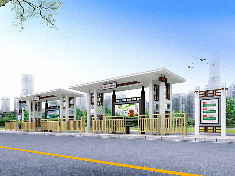 公交車候車亭一般是與公交站牌相配套的,為方便公交乘客候車時遮陽、防雨等,在車站、道路兩旁或綠化帶的港灣式公交停靠站上建設的交通設施。由于城市公交的日益發達,候車亭已發展成為城市一個不可或缺的重要組成部分,設計精美的候車亭也成為了城市一道美麗的風景。 一般候車亭棚體主要頂棚、立柱、頂弓、廣告燈箱和坐凳組成,也有用隔板來代替廣告燈箱的。