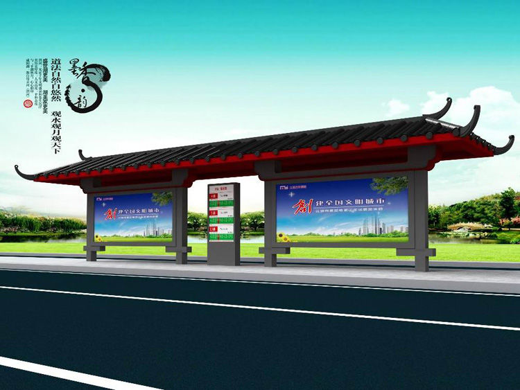 公交車候車亭一般是與公交站牌相配套的,為方便公交乘客候車時遮陽、防雨等,在車站、道路兩旁或綠化帶的港灣式公交停靠站上建設的交通設施。由于城市公交的日益發達,候車亭已發展成為城市一個不可或缺的重要組成部分,設計精美的候車亭也成為了城市一道美麗的風景。 一般候車亭棚體主要頂棚、立柱、頂弓、廣告燈箱和坐凳組成,也有用隔板來代替廣告燈箱的。
