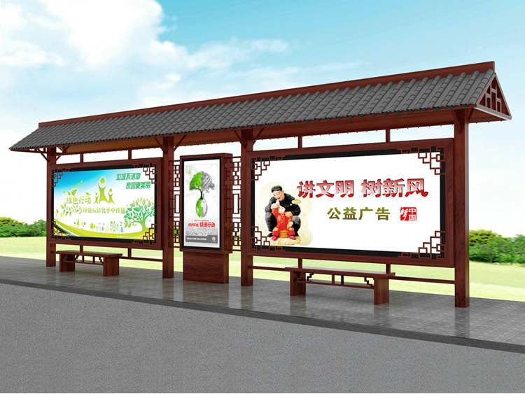 公交車候車亭一般是與公交站牌相配套的,為方便公交乘客候車時遮陽、防雨等,在車站、道路兩旁或綠化帶的港灣式公交停靠站上建設的交通設施。由于城市公交的日益發達,候車亭已發展成為城市一個不可或缺的重要組成部分,設計精美的候車亭也成為了城市一道美麗的風景。 一般候車亭棚體主要頂棚、立柱、頂弓、廣告燈箱和坐凳組成,也有用隔板來代替廣告燈箱的。