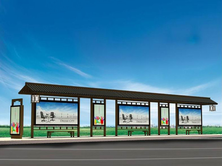 公交車候車亭一般是與公交站牌相配套的,為方便公交乘客候車時遮陽、防雨等,在車站、道路兩旁或綠化帶的港灣式公交?空旧辖ㄔO的交通設施。由于城市公交的日益發達,候車亭已發展成為城市一個不可或缺的重要組成部分,設計精美的候車亭也成為了城市一道美麗的風景。 一般候車亭棚體主要頂棚、立柱、頂弓、廣告燈箱和坐凳組成,也有用隔板來代替廣告燈箱的。