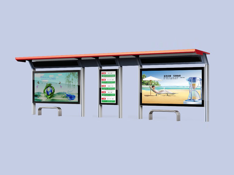 公交車候車亭一般是與公交站牌相配套的,為方便公交乘客候車時遮陽、防雨等,在車站、道路兩旁或綠化帶的港灣式公交停靠站上建設的交通設施。由于城市公交的日益發達,候車亭已發展成為城市一個不可或缺的重要組成部分,設計精美的候車亭也成為了城市一道美麗的風景。 一般候車亭棚體主要頂棚、立柱、頂弓、廣告燈箱和坐凳組成,也有用隔板來代替廣告燈箱的。