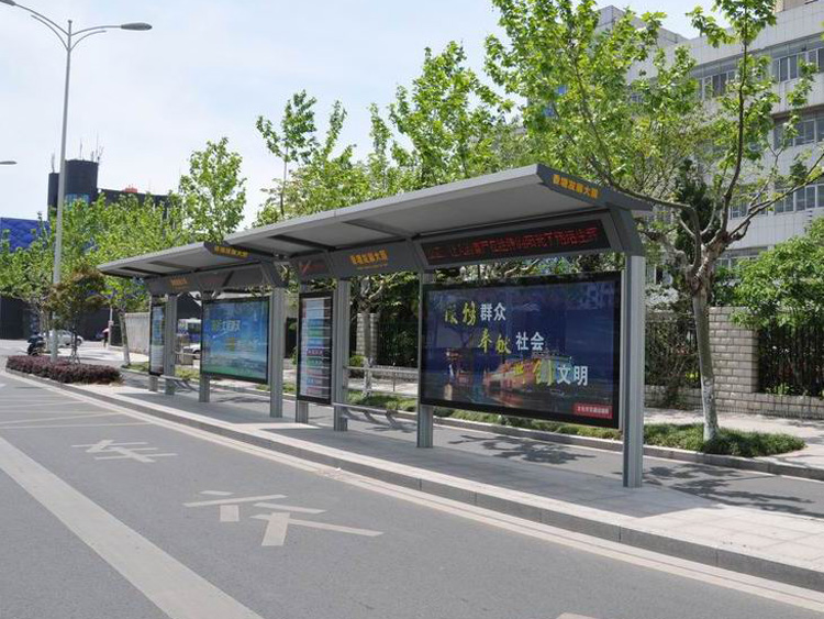 公交車候車亭一般是與公交站牌相配套的,為方便公交乘客候車時(shí)遮陽、防雨等,在車站、道路兩旁或綠化帶的港灣式公交停靠站上建設(shè)的交通設(shè)施。由于城市公交的日益發(fā)達(dá),候車亭已發(fā)展成為城市一個(gè)不可或缺的重要組成部分,設(shè)計(jì)精美的候車亭也成為了城市一道美麗的風(fēng)景。 一般候車亭棚體主要頂棚、立柱、頂弓、廣告燈箱和坐凳組成,也有用隔板來代替廣告燈箱的。