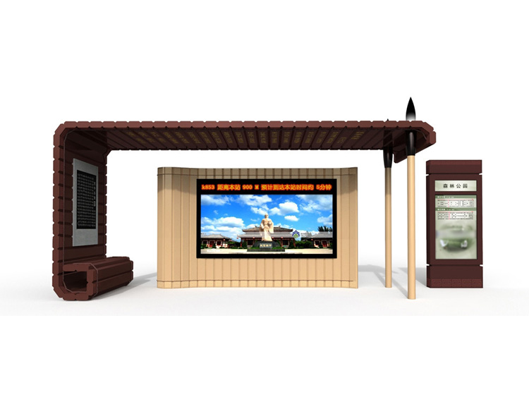 公交車候車亭一般是與公交站牌相配套的,為方便公交乘客候車時遮陽、防雨等,在車站、道路兩旁或綠化帶的港灣式公交停靠站上建設的交通設施。由于城市公交的日益發達,候車亭已發展成為城市一個不可或缺的重要組成部分,設計精美的候車亭也成為了城市一道美麗的風景。 一般候車亭棚體主要頂棚、立柱、頂弓、廣告燈箱和坐凳組成,也有用隔板來代替廣告燈箱的。