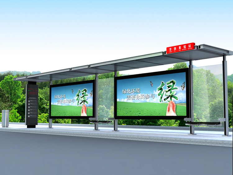 公交車候車亭一般是與公交站牌相配套的,為方便公交乘客候車時遮陽、防雨等,在車站、道路兩旁或綠化帶的港灣式公交停靠站上建設的交通設施。由于城市公交的日益發達,候車亭已發展成為城市一個不可或缺的重要組成部分,設計精美的候車亭也成為了城市一道美麗的風景。 一般候車亭棚體主要頂棚、立柱、頂弓、廣告燈箱和坐凳組成,也有用隔板來代替廣告燈箱的。