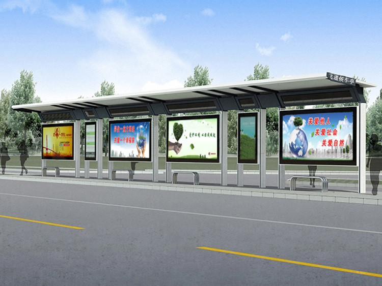 公交車(chē)候車(chē)亭一般是與公交站牌相配套的,為方便公交乘客候車(chē)時(shí)遮陽(yáng)、防雨等,在車(chē)站、道路兩旁或綠化帶的港灣式公交停靠站上建設(shè)的交通設(shè)施。由于城市公交的日益發(fā)達(dá),候車(chē)亭已發(fā)展成為城市一個(gè)不可或缺的重要組成部分,設(shè)計(jì)精美的候車(chē)亭也成為了城市一道美麗的風(fēng)景。 一般候車(chē)亭棚體主要頂棚、立柱、頂弓、廣告燈箱和坐凳組成,也有用隔板來(lái)代替廣告燈箱的。