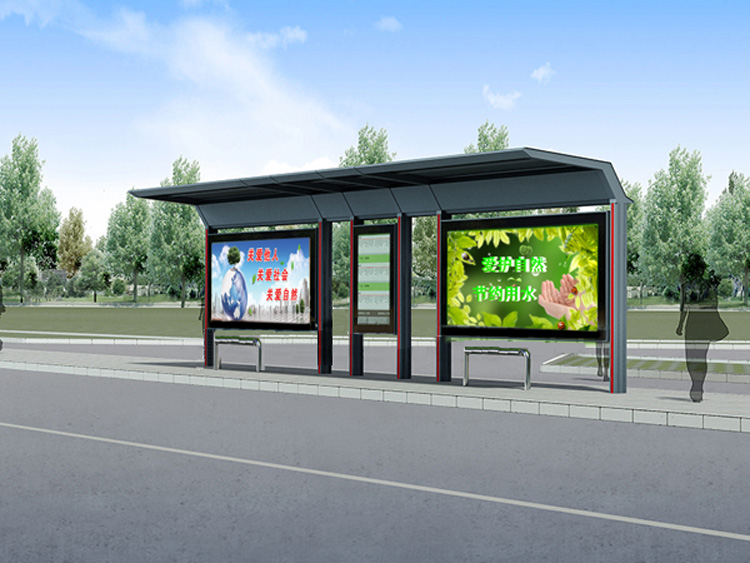 公交車候車亭一般是與公交站牌相配套的,為方便公交乘客候車時(shí)遮陽(yáng)、防雨等,在車站、道路兩旁或綠化帶的港灣式公交停靠站上建設(shè)的交通設(shè)施。由于城市公交的日益發(fā)達(dá),候車亭已發(fā)展成為城市一個(gè)不可或缺的重要組成部分,設(shè)計(jì)精美的候車亭也成為了城市一道美麗的風(fēng)景。 一般候車亭棚體主要頂棚、立柱、頂弓、廣告燈箱和坐凳組成,也有用隔板來(lái)代替廣告燈箱的。