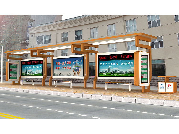 公交車候車亭一般是與公交站牌相配套的,為方便公交乘客候車時遮陽、防雨等,在車站、道路兩旁或綠化帶的港灣式公交停靠站上建設(shè)的交通設(shè)施。由于城市公交的日益發(fā)達,候車亭已發(fā)展成為城市一個不可或缺的重要組成部分,設(shè)計精美的候車亭也成為了城市一道美麗的風(fēng)景。 一般候車亭棚體主要頂棚、立柱、頂弓、廣告燈箱和坐凳組成,也有用隔板來代替廣告燈箱的。